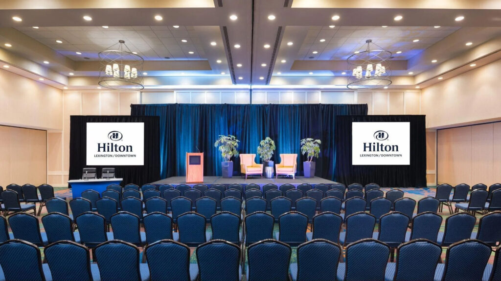 Hilton Lexington/Downtown features 18,690 sq ft of meeting space connected to Rupp Arena. EPEAK Studio enhances events here with professional AV, production, and media services.