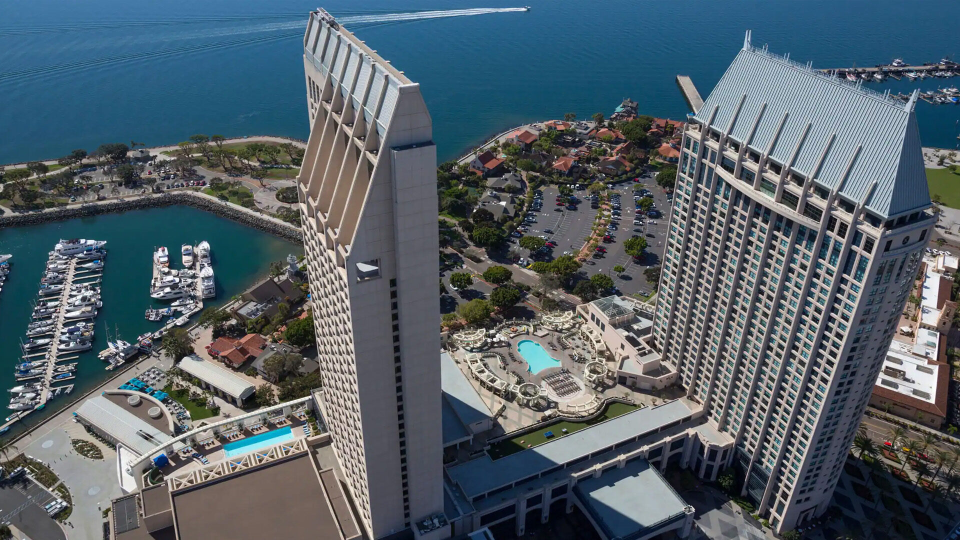 The Manchester Grand Hyatt San Diego is a premier waterfront venue dominating the downtown skyline with its two impressive towers. As the tallest waterfront building on the West Coast, it offers breathtaking views of San Diego Bay and the Pacific Ocean. The hotel is situated just steps from the San Diego Convention Center and the Gaslamp Quarter, making it a strategic hub for large-scale conferences and social gatherings. With resort-style amenities including rooftop pools and tennis courts, it balances business functionality with luxury leisure.