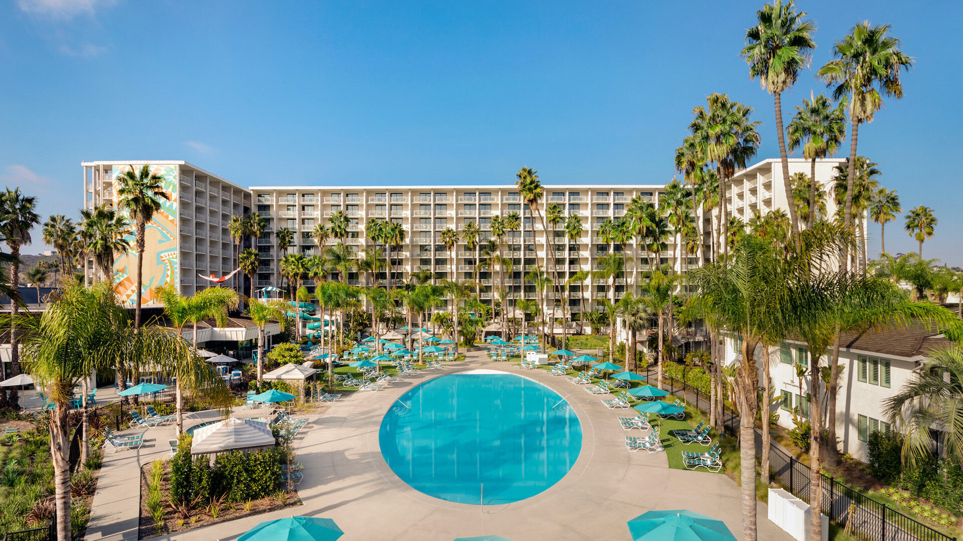 A beloved San Diego icon since 1953, Town and Country Resort has been reimagined with a multi-million dollar renovation that highlights its mid-century modern roots. Located in the heart of Mission Valley, the resort spans 295,050 square feet of flexible indoor and outdoor meeting space, including a dedicated convention center and sprawling lawns. Guests enjoy 671 renovated rooms, five dining outlets, a four-story waterslide, and immediate access to the adjacent Riverwalk Golf Club.