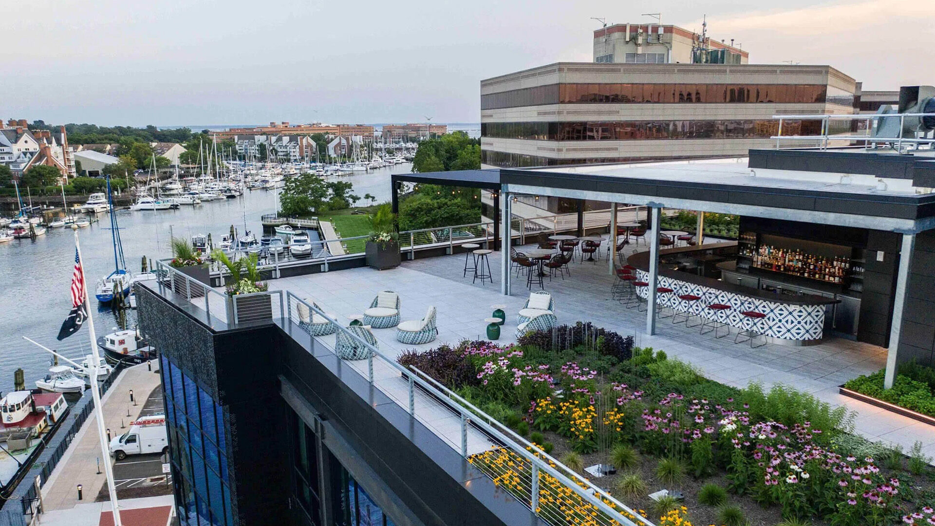 Located in Stamford’s South End, The Village Stamford is a new indoor/outdoor premium waterfront campus designed to serve the needs of entrepreneurs and creators. Touting 133,000 square feet with nearly 1,000 feet of walkable marina, it fuses modern office space and unique private event venues with world-class food and beverage offerings like The Wheel and Cisco Brewers.