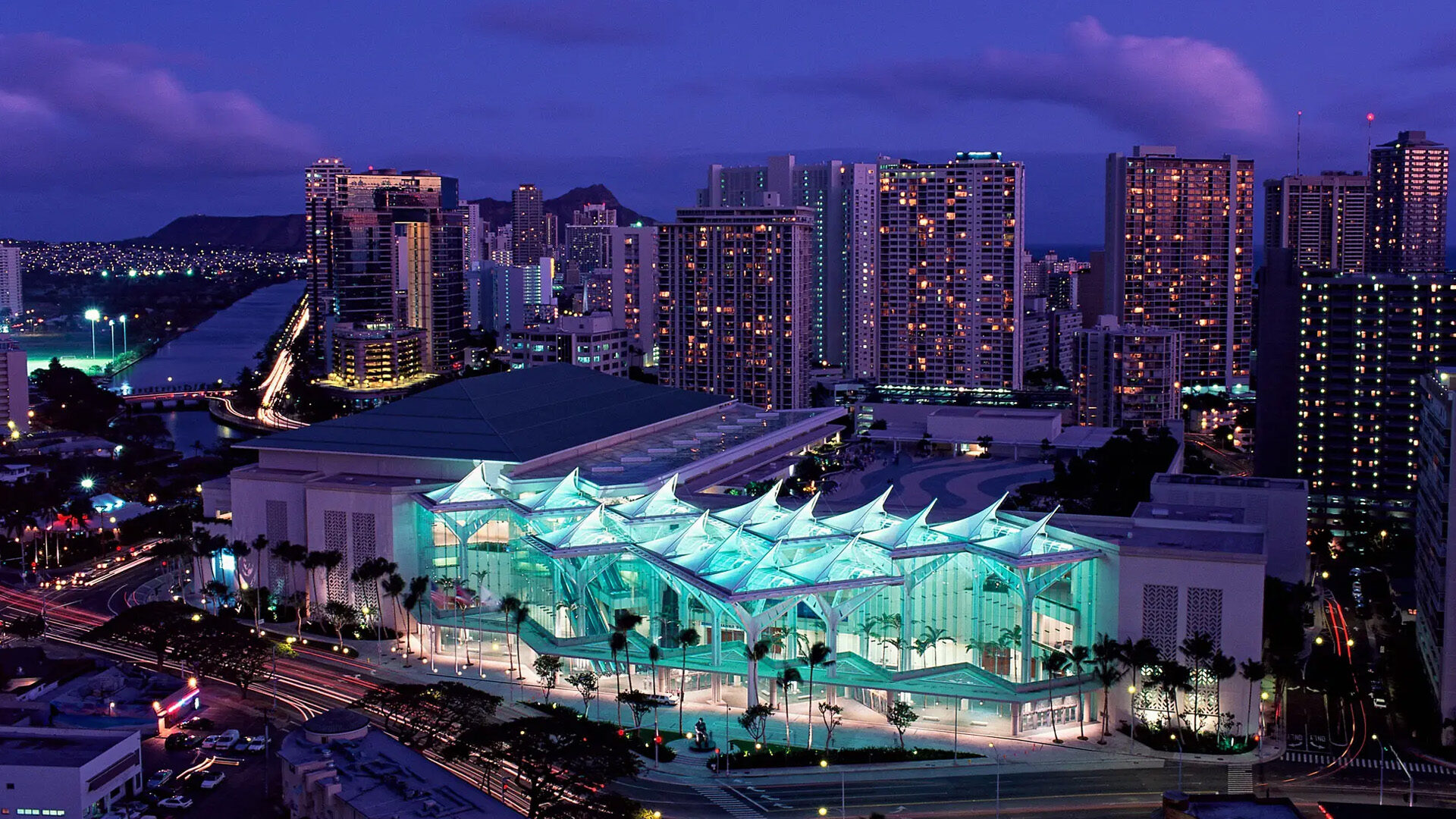 The Hawaii Convention Center is a world-class facility located in Honolulu, just minutes from Waikiki, featuring a distinct open-air architectural design that incorporates lush tropical landscaping. Managed by ASM Global, the venue spans 1.1 million square feet and includes a 200,000-square-foot exhibit hall, a 35,000-square-foot ballroom, and a 2.5-acre rooftop garden, making it a premier destination for international meetings and cultural events.
