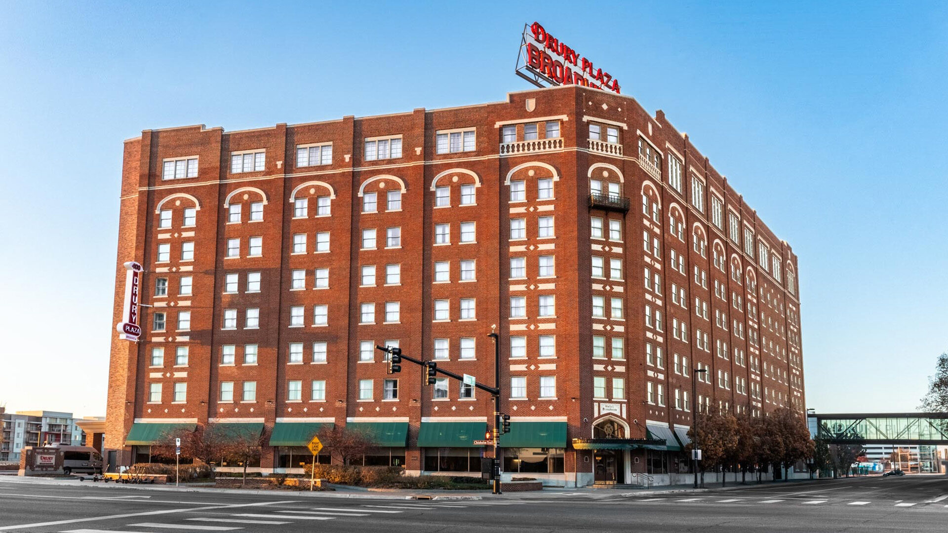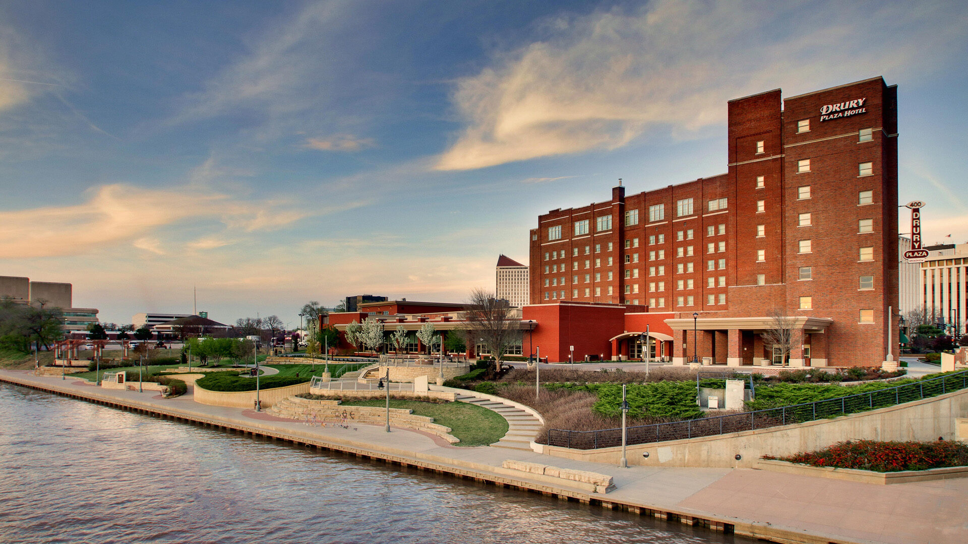 Ideally situated along the Arkansas River in downtown Wichita, the Drury Plaza Hotel Broadview Wichita is a historic landmark originally built in 1922. This LEED-certified venue blends timeless 1920s elegance with modern sustainability, offering over 20,000 square feet of meeting space, including the stunning Crystal Ballroom which features a famous mosaic mural by Native American artist Blackbear Bosin.