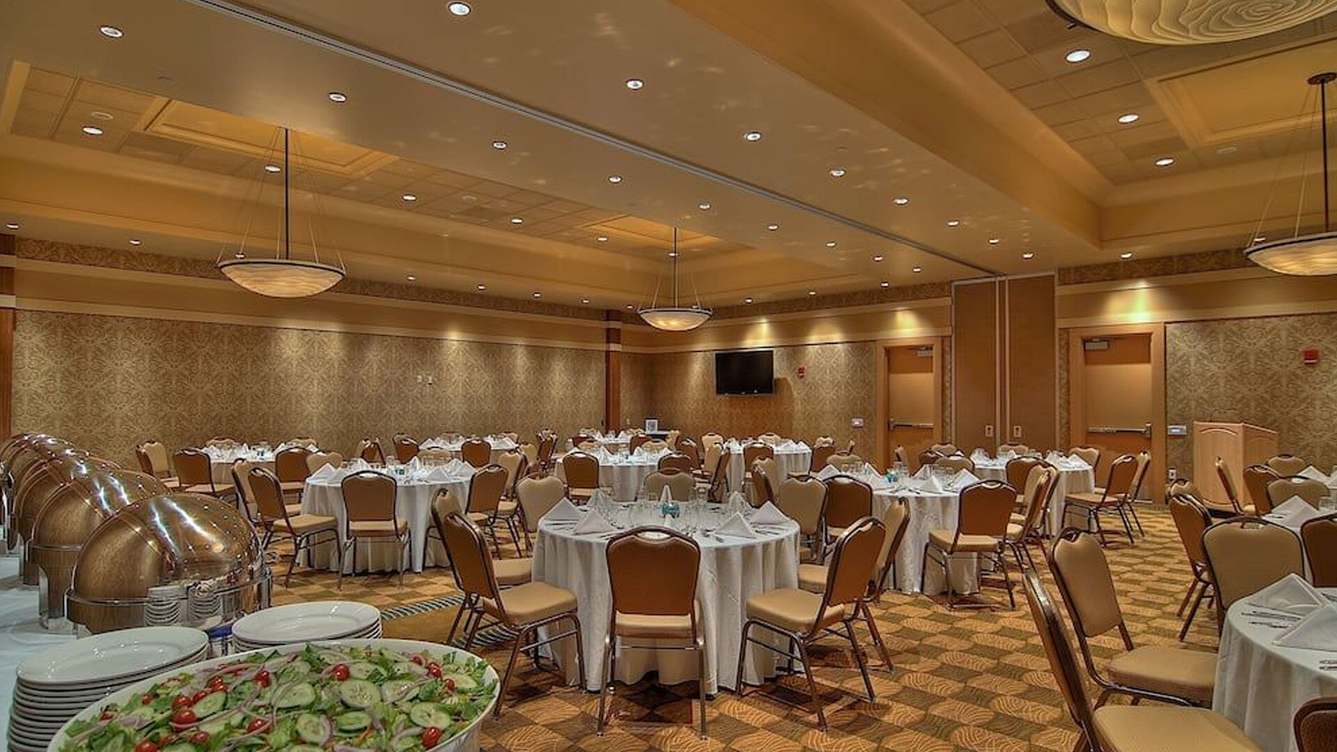 Overlooking the Penobscot River, Hollywood Casino Bangor combines entertainment and hospitality with a 152-room hotel and a lively casino featuring nearly 800 slots and table games. The venue offers flexible event facilities, including the Epic Ballroom and meeting rooms, supported by on-site dining options like Hops House 99 and Zombie Dogz.