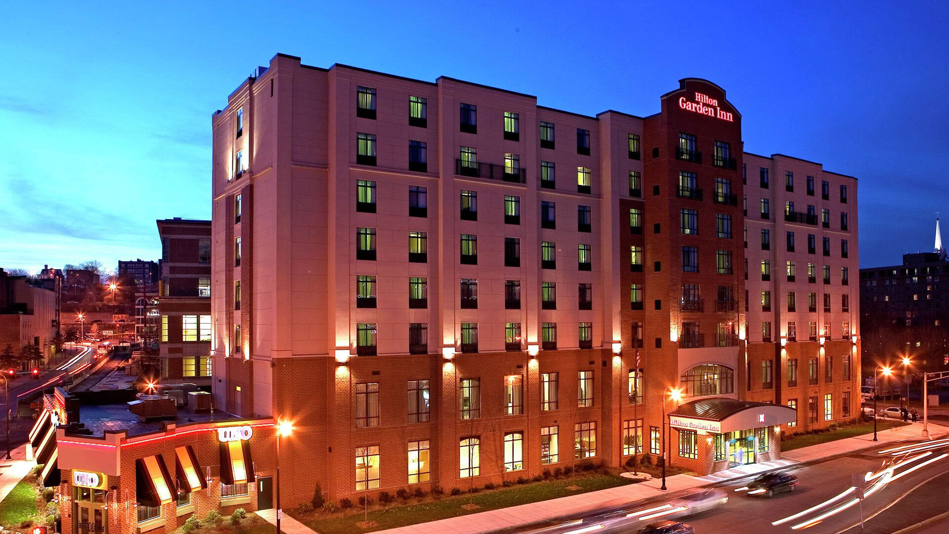 Situated in the heart of downtown Worcester, the Hilton Garden Inn offers direct access to the DCU Convention Center and is minutes from Mechanics Hall. This modern hotel features 199 guest rooms, an indoor pool, a 24-hour fitness center, and on-site dining at The Garden Grille and Uno Pizzeria. With 3,500 square feet of flexible meeting space, it is an ideal choice for business conferences and intimate social gatherings.