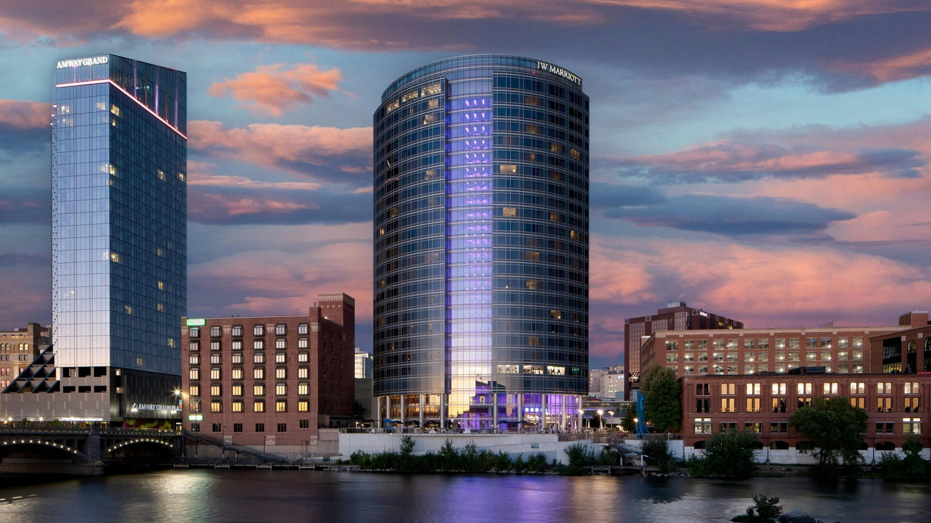 The JW Marriott Grand Rapids is a premier downtown destination, offering an urban retreat with 24 floors of glass architecture on the banks of the Grand River. Connected via a climate-controlled skywalk to the DeVos Place Convention Center and Van Andel Arena, the venue features 331 smoke-free rooms, a world-class spa, and sophisticated dining options. Its central location in the Hotel District provides seamless access to the city’s best attractions and entertainment.