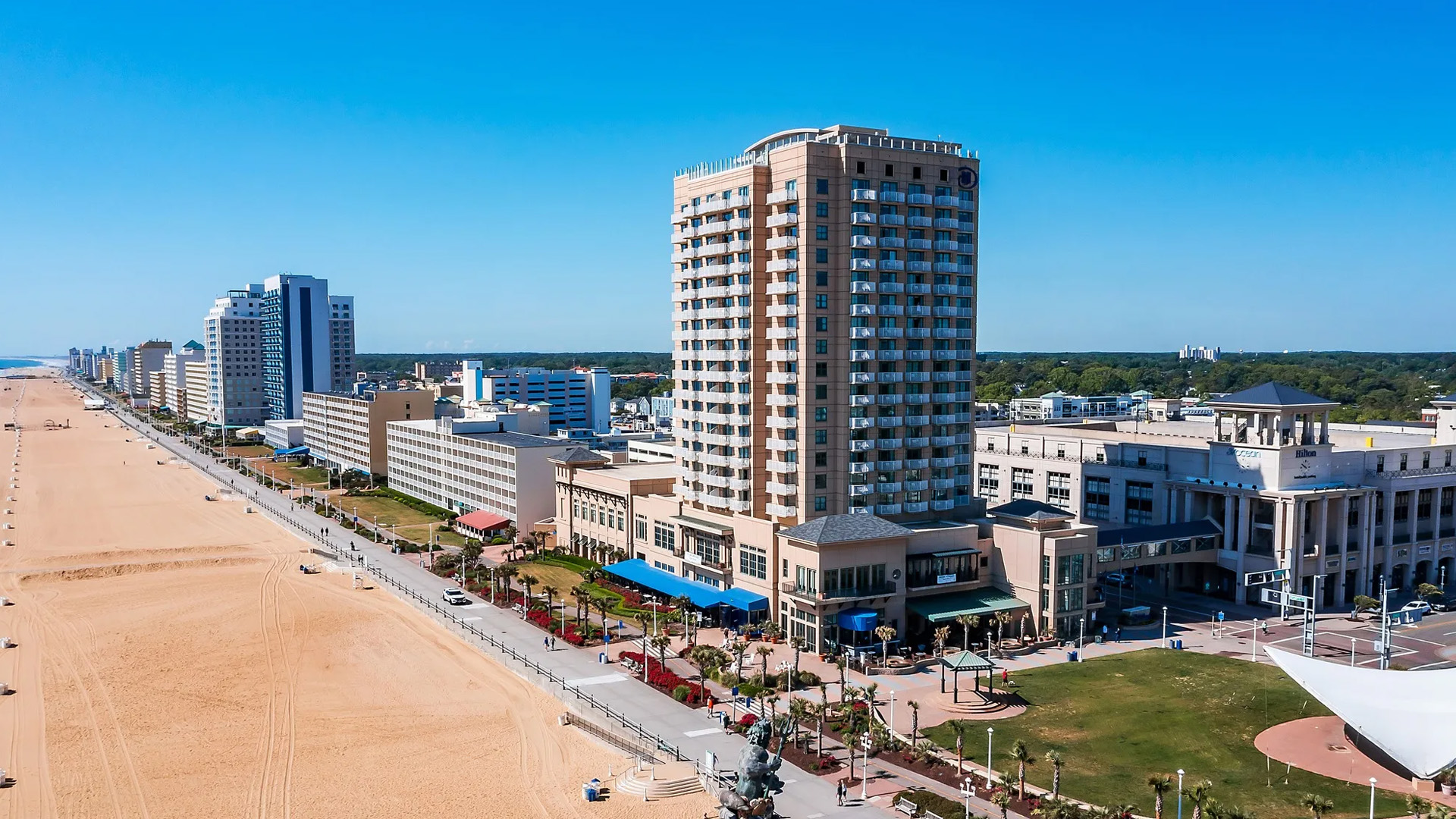 Located centrally on the famous boardwalk, the Hilton Virginia Beach Oceanfront offers a premier resort experience with 289 guest rooms and suites. The venue boasts panoramic ocean views, a rooftop infinity pool, and the award-winning Catch 31 Fish House and Bar. Its versatile meeting facilities, including the pillarless Peacock Ballroom, make it a top choice for conferences and social gatherings.