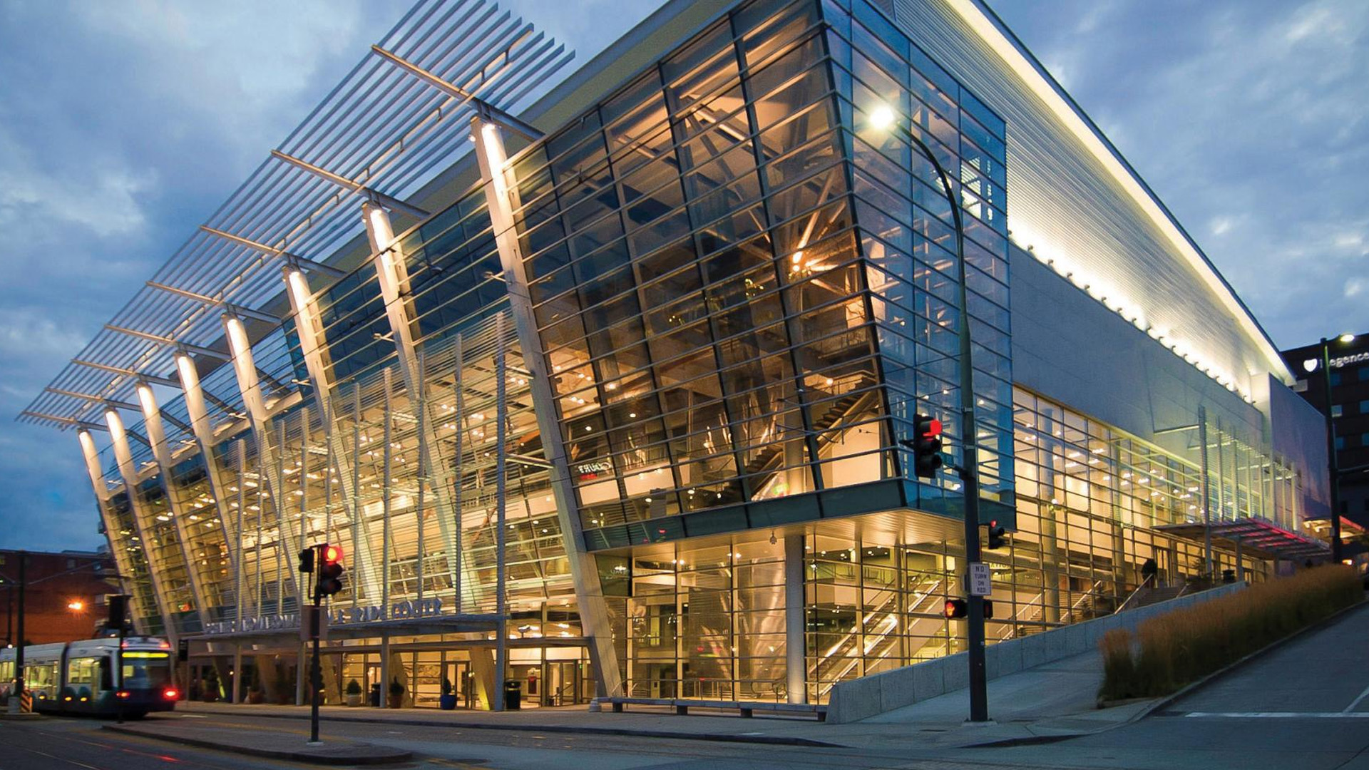 The Greater Tacoma Convention Center is a modern, award-winning facility located in the heart of downtown Tacoma, Washington. With over 119,000 square feet of versatile event space, the venue features a 50,000-square-foot column-free exhibition hall and a 13,650-square-foot ballroom. Distinguished by its glass-walled architecture, the center offers breathtaking views of Mount Rainier and the city skyline, providing a scenic backdrop for conventions, trade shows, and corporate gatherings.