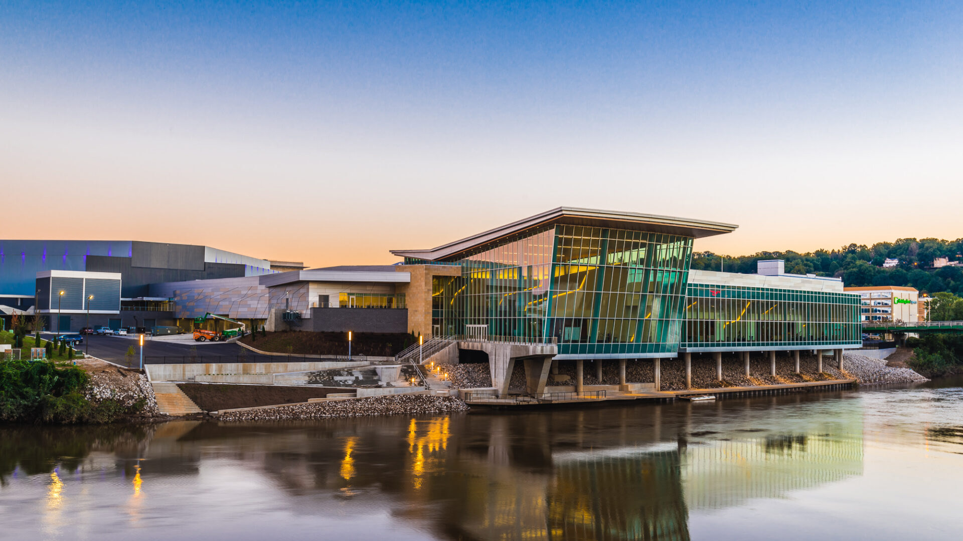 The Charleston Coliseum & Convention Center is the state’s premier entertainment and meeting destination, located in downtown Charleston, West Virginia. This expansive complex recently underwent a $100 million renovation and features a 13,500-seat coliseum, a 50,000 square foot exhibit hall, and a stunning glass atrium overlooking the Elk River. With LEED Silver certification, it serves as a modern hub for conventions, concerts, and sporting events.