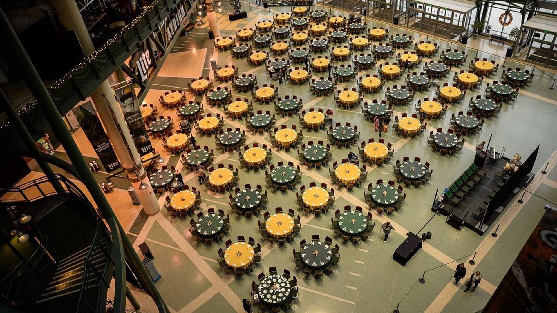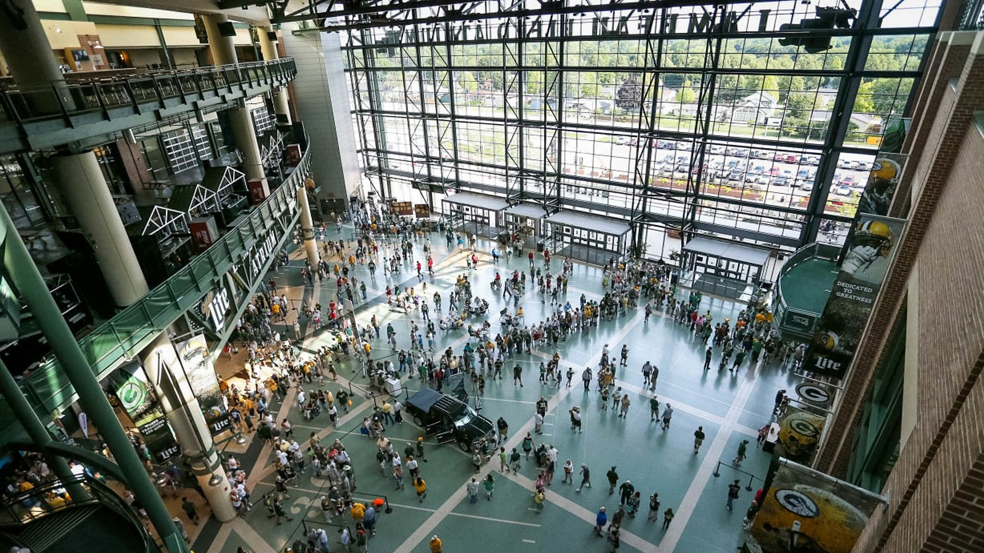 The Lambeau Field Atrium is a premier year-round destination connected to the historic Lambeau Field stadium. Spanning more than 376,000 square feet and rising five stories high, it features a variety of flexible event spaces, including the expansive Atrium Floor with dramatic windows, the Legends Club, and the Packers Hall of Fame. This iconic venue combines the excitement of the NFL with state-of-the-art facilities for corporate meetings, galas, and social gatherings.